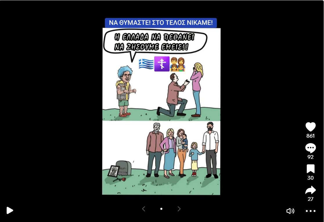 Στη θέση τους βάζει ανάρτηση στο Ttik Tok όσους ακραίους εκφράζονται με μίσος, και ρατσισμό προς τις ισχυρές αξίες που έχει η Ελλάδα, όπως την αγάπη για την πατρίδα, την χριστιανική θρησκεία και την οικογένεια και το περνάνε ως κάτι δήθεν προοδευτικό και διαφορετικό.